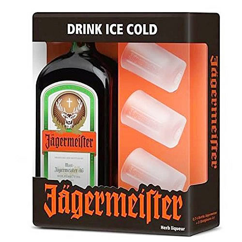 JAGERMEISTER 35° 70CL+4 VERRE SHOT METAL+ETUI