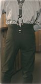 Pantalon western authentique avec ceinture haute et echancrée, avec poches sur les côtés, à l'arrière réglable par martingales. Avec boutons pour bretelles.