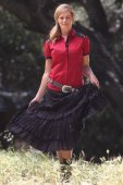 Chemise fantasie avec manches courtes bouffantes et empiecement de dentelle noire légèrement transparent.