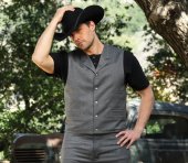 Gilet old style à trois poches, ajustable au dos grâce à une martingale.